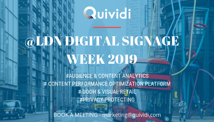 Quividi will be attending this year again the London Digital Signage Week (May 13 – 17, 2019). Orchestrated by our friends at Dailydooh & Ministry of New Media, this week … Read more