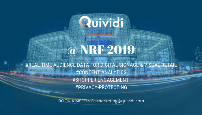 Quividi will be attending NRF’s Retail Big Show (January 13th – 15th 2019) in NYC. We’ll discuss how retailers tap into Quividi’s solutions to test, plan, trigger and monetize their … Read more