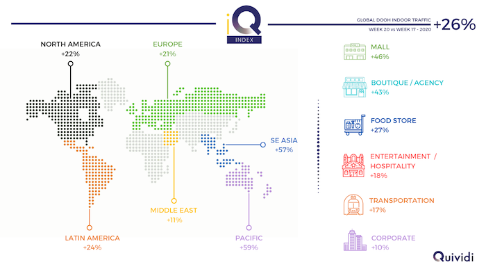 Global DOOH Indoor Traffic Recovery Accelerates, Says Quividi iq index