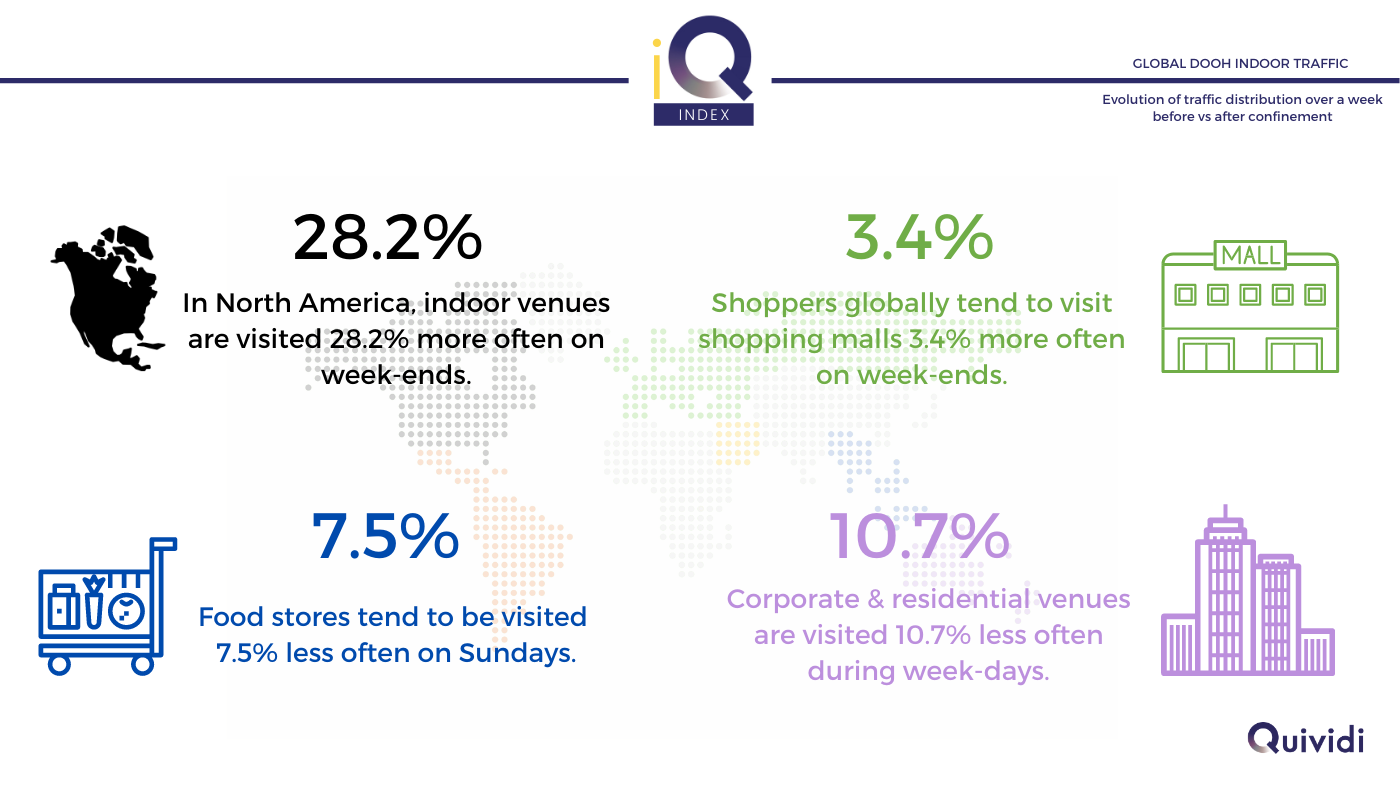 Quividi, the pioneer and World #1 Audience & Campaign Intelligence platform for DOOH & Digital Signage, has released the third edition of iQ Index, its Global DOOH Indoor Traffic Index, aggregating the real-time audience data of its hundreds of customers and their tens of thousands of screens across the globe.